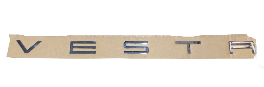 Эмблема V E S T A ХРОМ задняя на трафарете шрифт порше